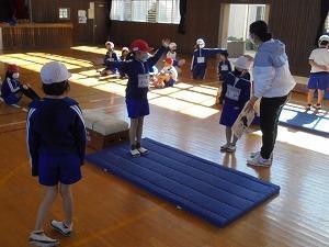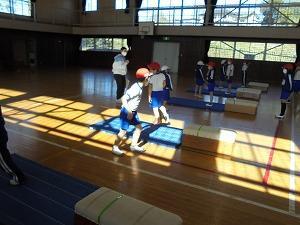 2時間目、体育館では2年生が「跳び箱を使った運動遊び」をしていました。