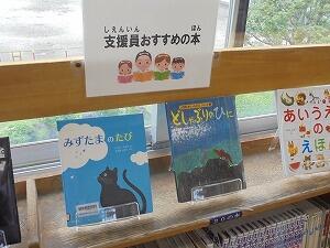 本の分類に関する掲示物を作成したり、おすすめ本のコーナーを作成したりしてくれています・・・