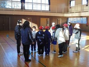 1時間目、体育館でソフトバレーボールを使ってボール運動に取り組んでいました。