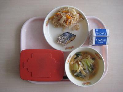 今日の給食の献立は、【ご飯・牛乳・さわらスタミナやき・きりぼし大根の煮物・みそしる】でした。