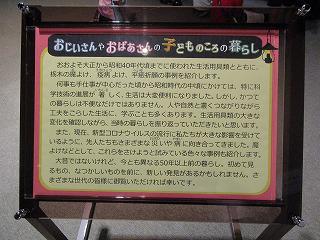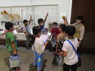 展示室1・2やスロープ展示を楽しみながら、テーマ展である「おじいさんやおばあさんの子どものころの暮らし」について解説をいただきながら学んでくることができました。公園での昼食も楽しめたようでした。