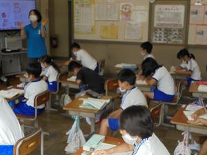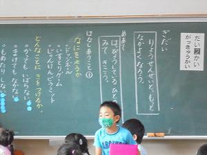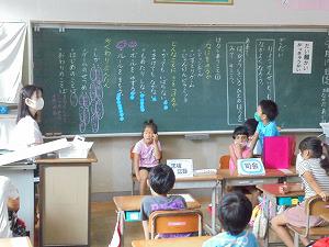 「声に出して楽しみましょう。」という目標で、“ことばあそびうた”をリズミカルに楽しく読んでいました。