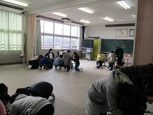 冷たい水を使いながらも、みんな一生懸命に清掃に取り組んでいます。