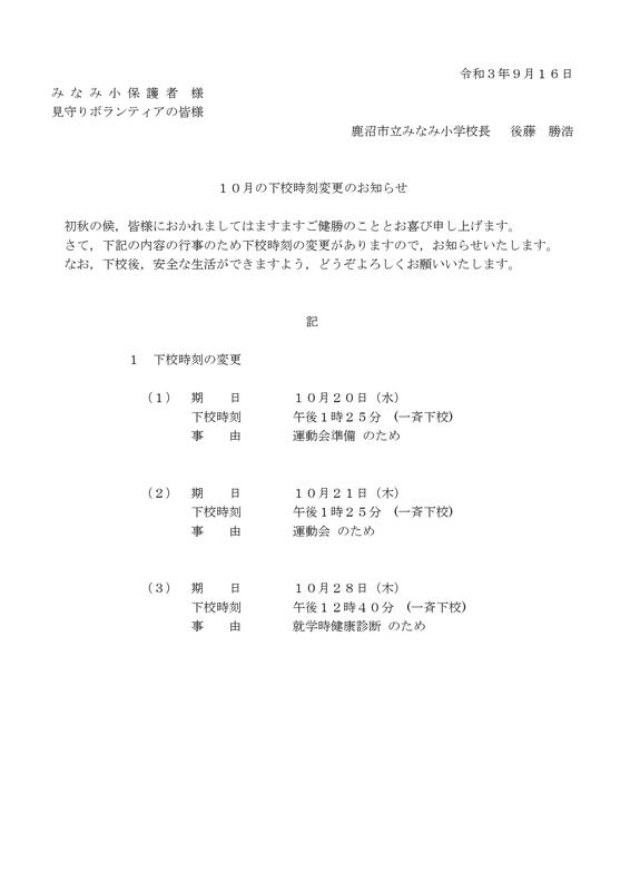 下校時や帰宅後の子供たちの安全についてご配慮いただきますようお願いいたします。
