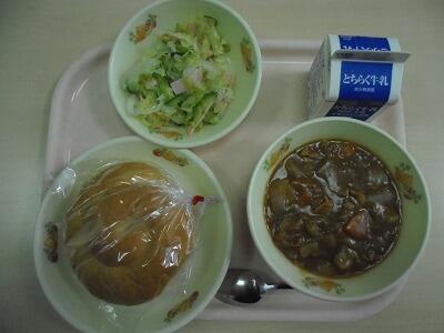 今日の給食の献立は、【バターロール・牛乳・ブラウンシチュー・ハムマリネサラダ】でした。
