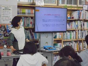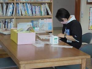 今日は、学級文庫の補修のお仕事を中心に取り組んでくださっています。