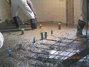 今日は、ミキサー車等の大型車が敷地内に入って工事を行っています。