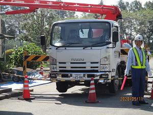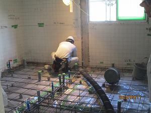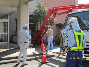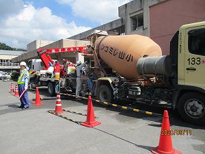 今日は、ミキサー車等の大型車が敷地内に入って工事を行っています。