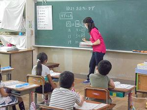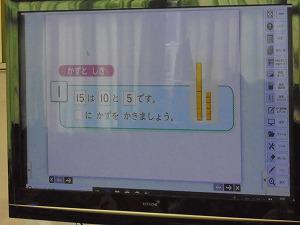 「10より大きい数」です。担任の先生の丁寧な説明に耳を傾けながら、一人一人が発表したりつぶやいたりしながら、きちんと考えていました。