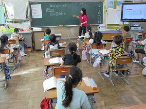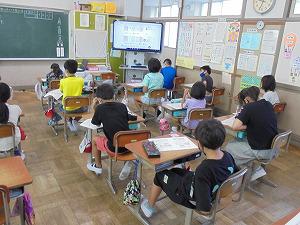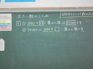 2時間目の3年生は、算数の時間。「大きい数の仕組み」について、黒板や電子黒板を使いながら学習しています。一つ一つの基本的な事項を確認しながら学習していました。