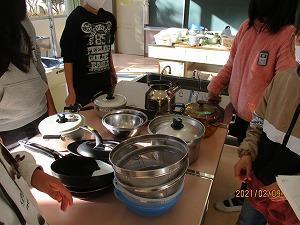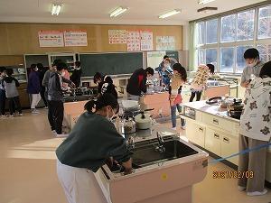 家庭科室から火が出たことを想定して校庭に避難しました。