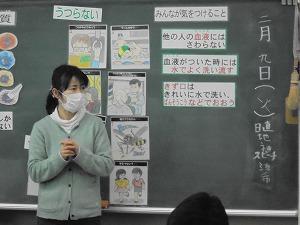 エイズについて正しい知識を知り、エイズ感染者に対する差別や偏見をなくし共に生きる態度を育てることをねらいとして授業を行いました。