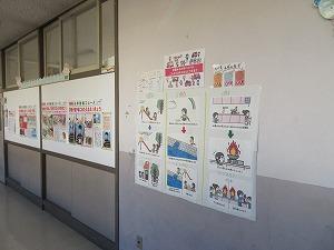 昨日、今年度最後の避難訓練を行いましたが、係の先生が「防災に関するクイズ」を模造紙に作成し、校内の数か所に掲示してくれました。
