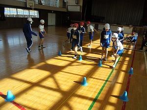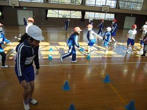 先生が用意した3コースに分かれて、運動遊びの楽しさに触れながら、基本的な動きや技能を身に付けることをねらいに学習していました。