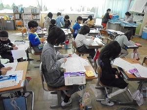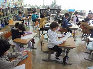 1年生は係活動について、2年生は自分の成長について発表したりまとめたりしていました。