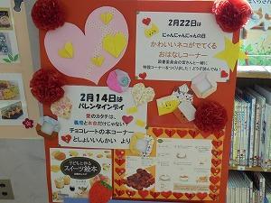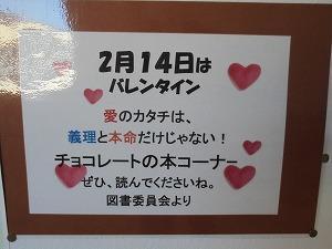 図書室内外の掲示物には、2月14日のバレンタインデー(チョコレート等も含む)にちなんだ本の紹介コーナーがあり、子どもたちの読書意欲喚起のために工夫してくださっています。