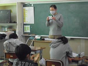 「電流」についての学習です。電流計の使い方についての説明を、しっかりと聞いていました。
