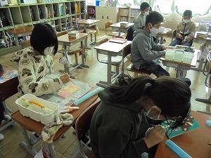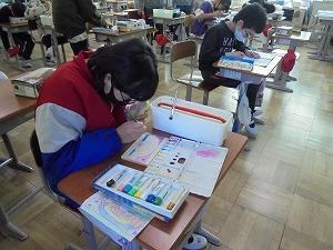 6年生の図工の時間には、卒業記念の作品「オルゴール」のふたの着色とニス塗りをしていました。