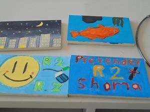 自分らしい色づかいの作品が出来上がりました。ニス塗りは、健康安全面にも配慮して、隣の教室で担任の先生の指導を受けながら行っていました。