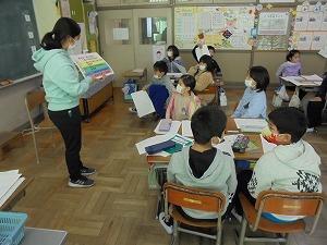 3年生が、ALTのビビロ先生と英語の学習をしていました。