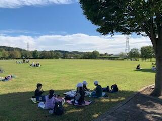 また、秋日和の中、芝生広場でお弁当を食べました。
