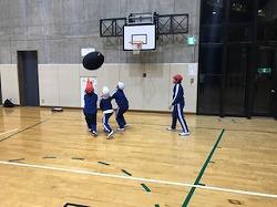 遊具遊びとニュースポーツを行いました。ニュースポーツでは、不思議な形のボールでバレー対決をしました。