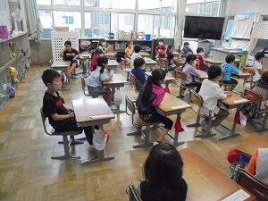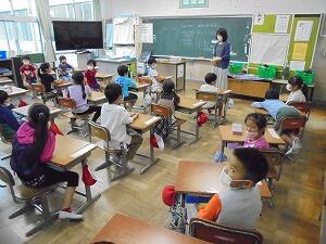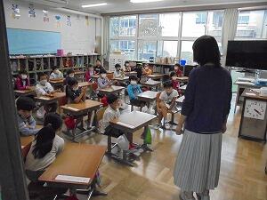 1年生が、運動会について担任の先生のお話を聞いていました。