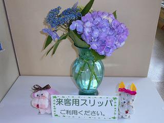 さっそく校内に飾らせていただきましたが、職員玄関が、梅雨らしく、