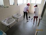 6年生が不在なので、朝の旗揚げ当番やボランティア清掃など5年生が最上級生として活躍して