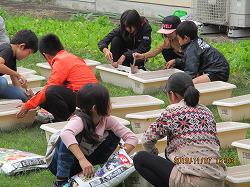 【パンジーの土づくりをしている様子;自然愛護委員会】