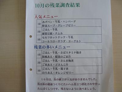 10月は、魚の献立に人気がありませんでした。魚を食べることの大切さは、生涯通じて意識しなければなりません。子どもたちにも、残さず食べるようになってほしいものです。