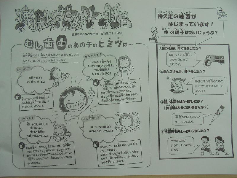 本日、「ほけんだより11月号」を児童を通して配布しました。