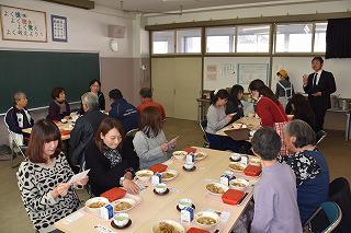 久しぶりに食べた給食に、皆さん口々に「子どもたちは、こんなに美味しいものを食べているんだ。」「美味しい。」と言いながら召し上がっていました。