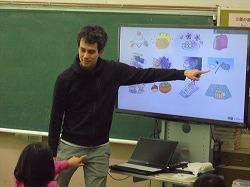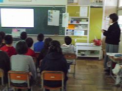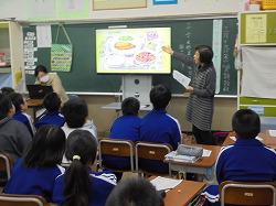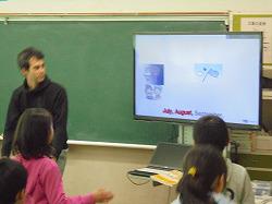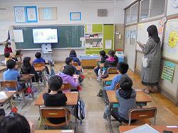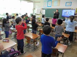 2年生の教室では、電子黒板を使いながら、リズムに乗って楽しそうに学習しています。