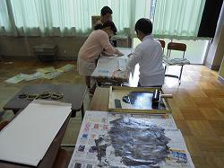 紙の材質によって、刷り上がりの感じが微妙に変わる紙版画。