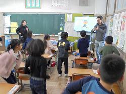 体を動かしながらの学習に、1年教室は熱気でいっぱい!