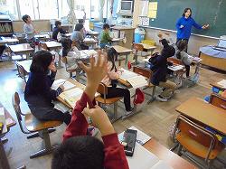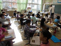 では、先生の発音を真似て大きな声で発音していました。