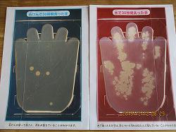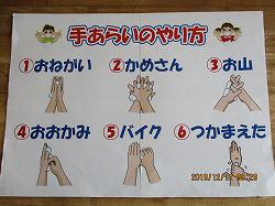 「おおかみのポーズ」;片手をパーにして指先を洗う。