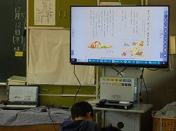 1年生が国語の学習をしていました。テンポよく言葉の学習をした後に、文学教材の学習に入りました。