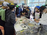 今日の1.2時間目、6年生は調理実習を行っています。