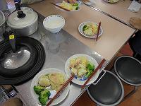 30分ほどして調理室をのぞくと、もう料理は仕上げの段階でした。