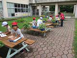 雨が上がった時間に、中庭で育てているあさがおの観察をしました。