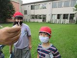 ①虫グループは、各自で虫取り網を持ち昆虫採集をしました。草むらでバッタや蝶を捕まえたり、木や石の下にいる虫を見つけたりしました。