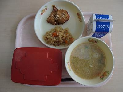今日の給食の献立は、【ご飯・牛乳・鶏の香味焼・切り干し大根の煮物・ごま汁】でした。