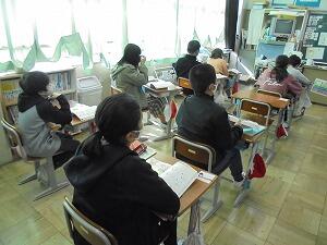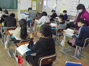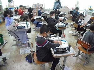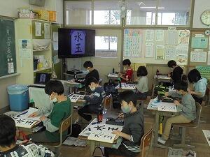 2時間目、3年生は書写の時間。今日は、習字の学習をしていました。