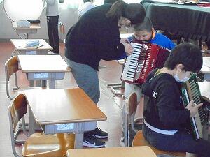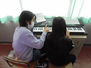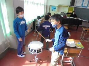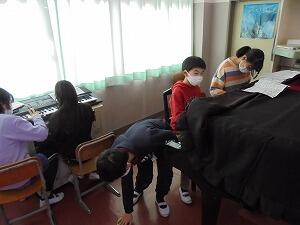 音楽室で楽器演奏の練習をしていました。各楽器ごとに楽しそうにパート練習をしていました。