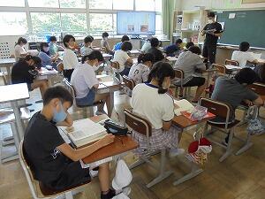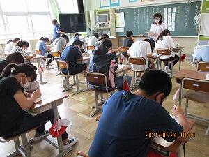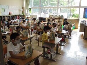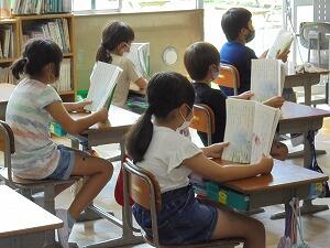 教室では、みんな声を合わせ、よい姿勢で音読をしていました。