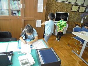 2時間目、生活科の学習で1年生が校長室見学にやってきました。