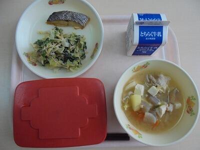 今日の給食の献立は、【ごはん・牛乳・ミナミカマスの塩焼き・ごま和え・ぶた汁】でした。