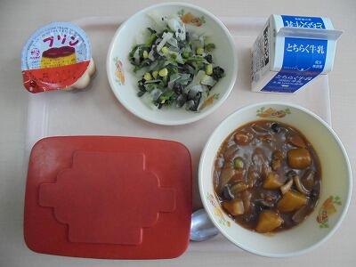 今日の給食の献立は、【ごはん・牛乳・ハヤシライス・ほうれん草サラダ・プリン】でした。